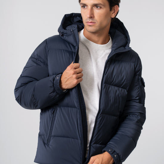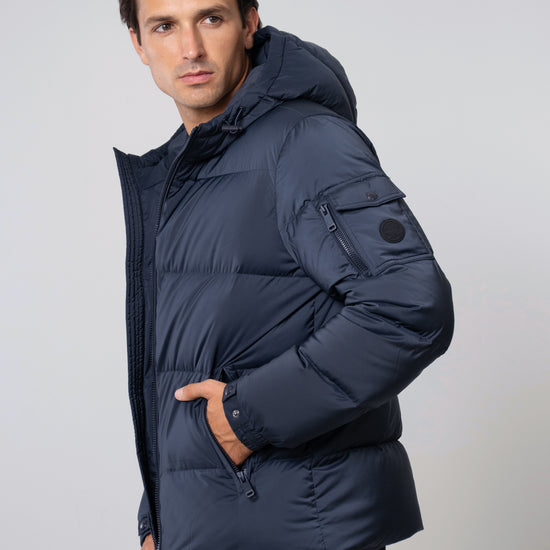 The HENRY Hooded Hipster Jacket is a 27" men’s outerwear essential built for modern warmth with a minimalist edge. Crafted from recycled poly with added stretch, it’s insulated with repurposed down for lightweight performance that keeps you warm without the bulk.